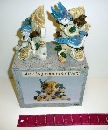 This unique Blue Jay Bookend comes in a picture gift box. Each end Each bookend is approximately 5 inches tall and 3 inches wide. Great decorative piece for any home..../ Decorative Blue Jay Bookends, Set of Two, 5"t X 3"w / Decorative